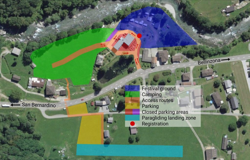 Per ÖV nimmst du den Bus bis zur Bushaltestelle: Cama, Piani di Verdabbio – dann bist du direkt beim Festivalgelände.